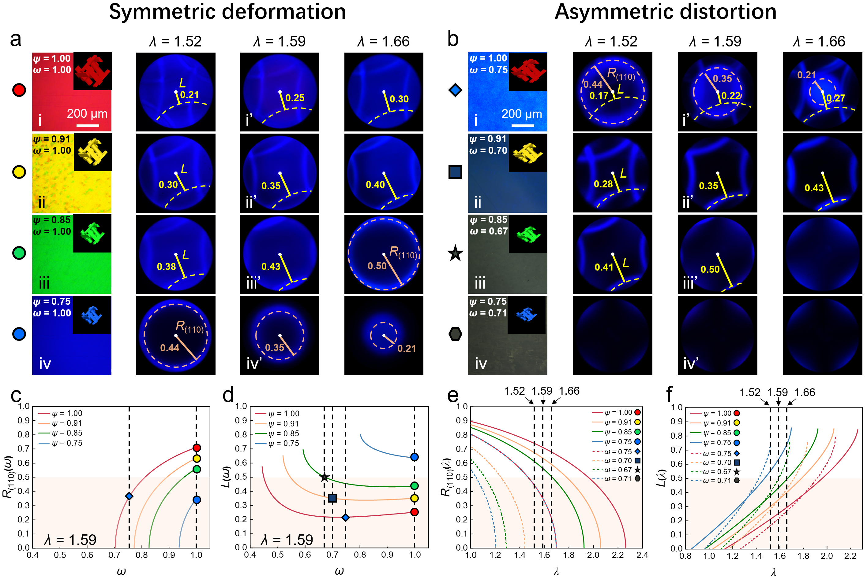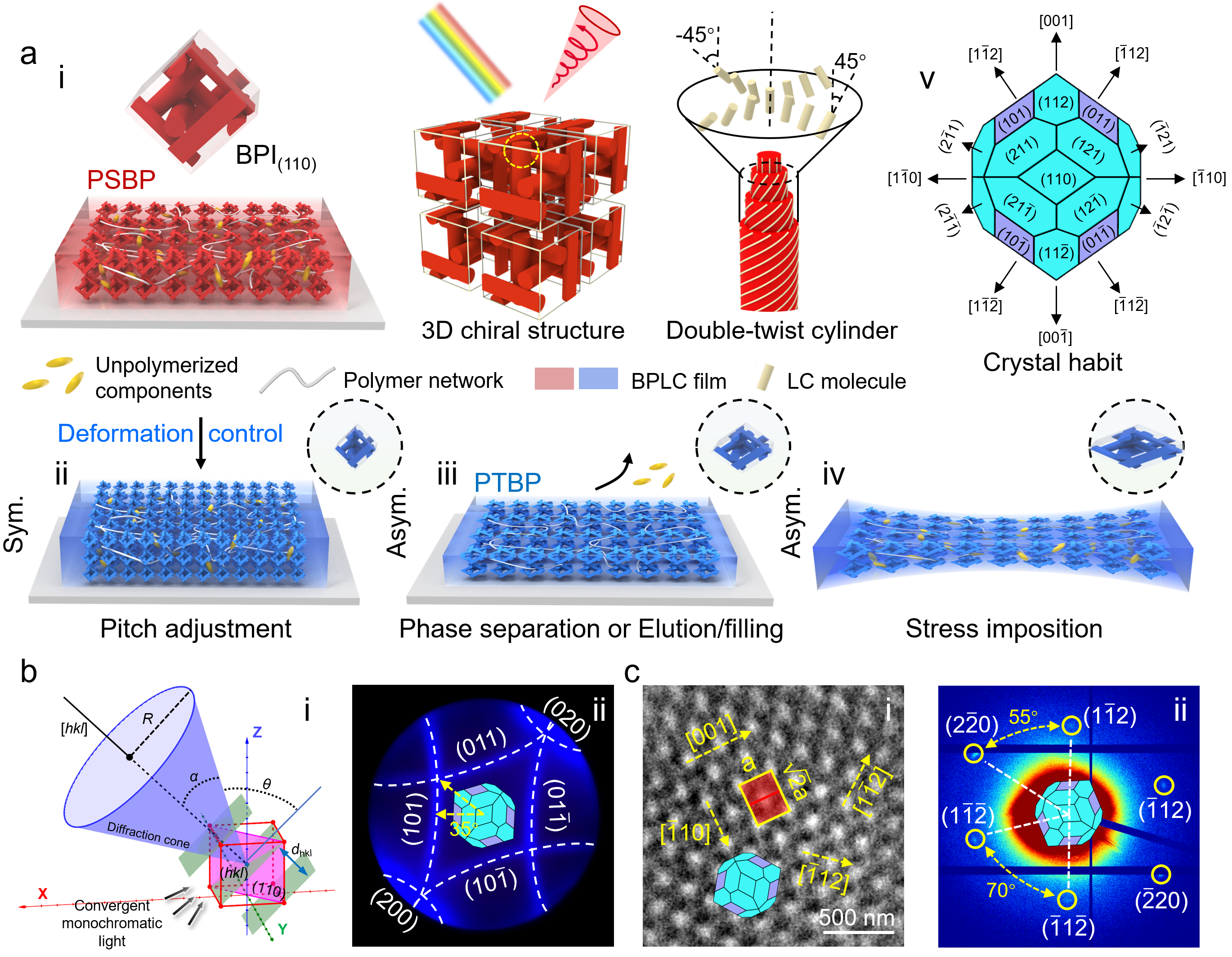 近年來,藍相液晶(BPLCs)因其獨特的三維手性立方晶體結構與卓越的光學調控能力,在柔性顯示、高安全加密以及智能傳感等光子技術前沿領域展現出巨大應用潛力。尤其在實現角度依賴結構色調控、多維光場操控與響應型光學功能器件開發方面,藍相液晶被視為下一代動態光子器件的核心材料之一。然而,由于其晶格結構在實際應用中易發生對稱或非對稱形變,其所帶來的三維光學衍射變化尚缺乏系統的量化建模與預測手段,嚴重制約了其器件化發展與精確光場調控能力的提升。