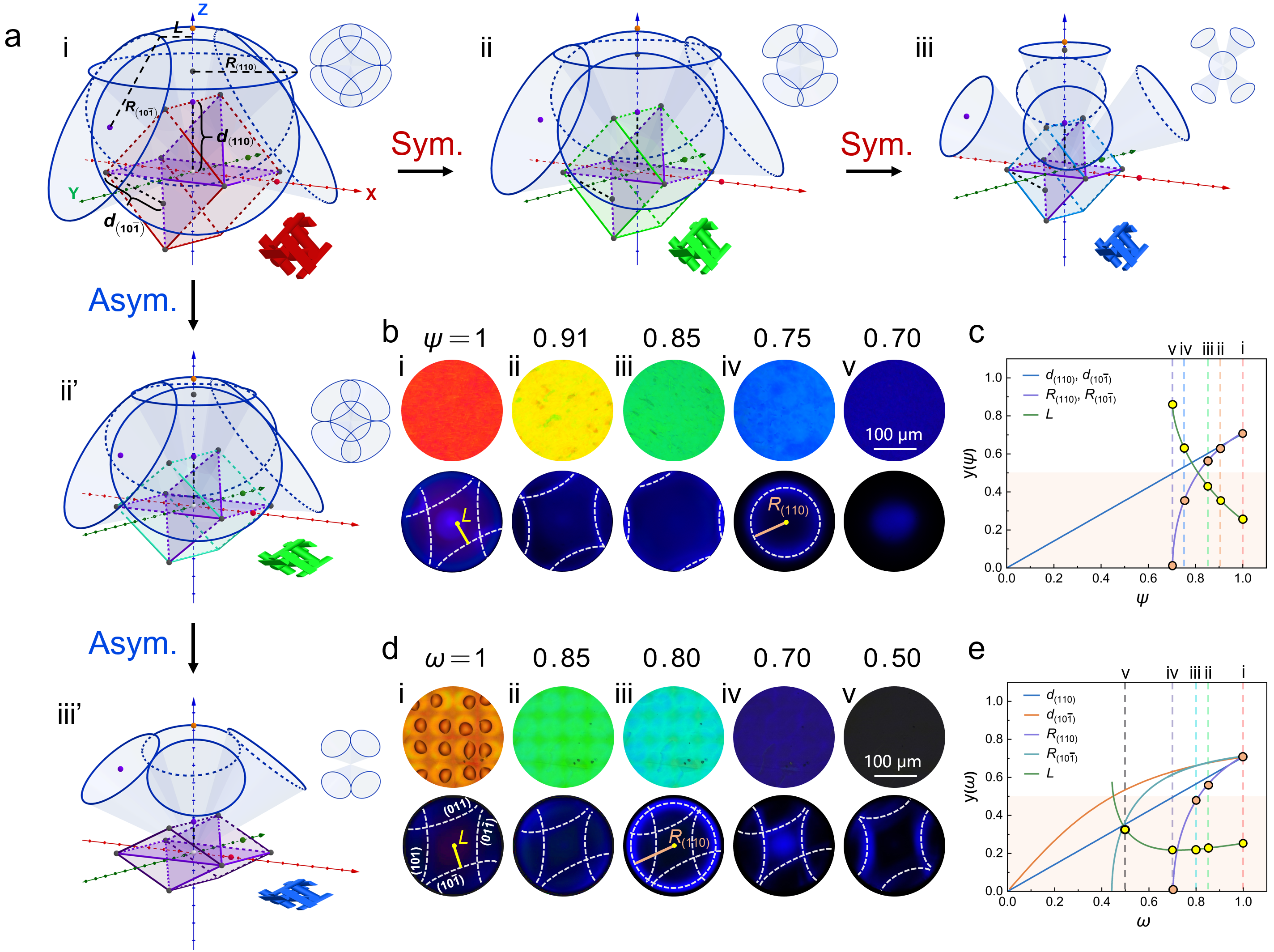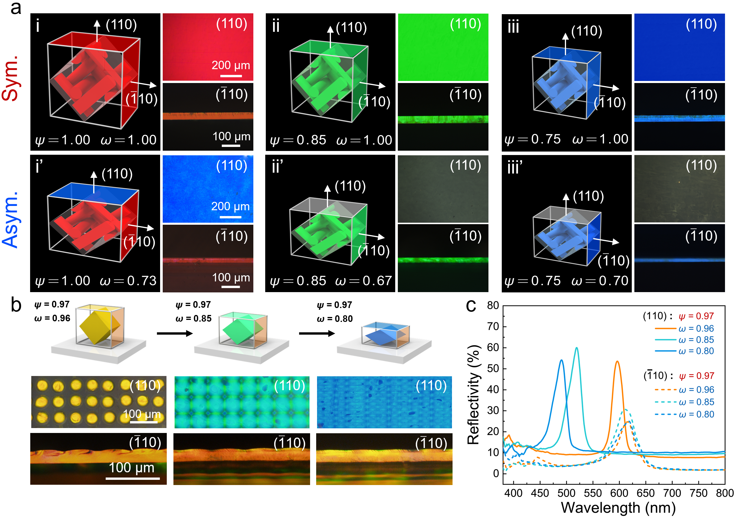 圖4. 由BPI(110)立方晶格變形參數決定的三維光學性質的對稱與非對稱調控