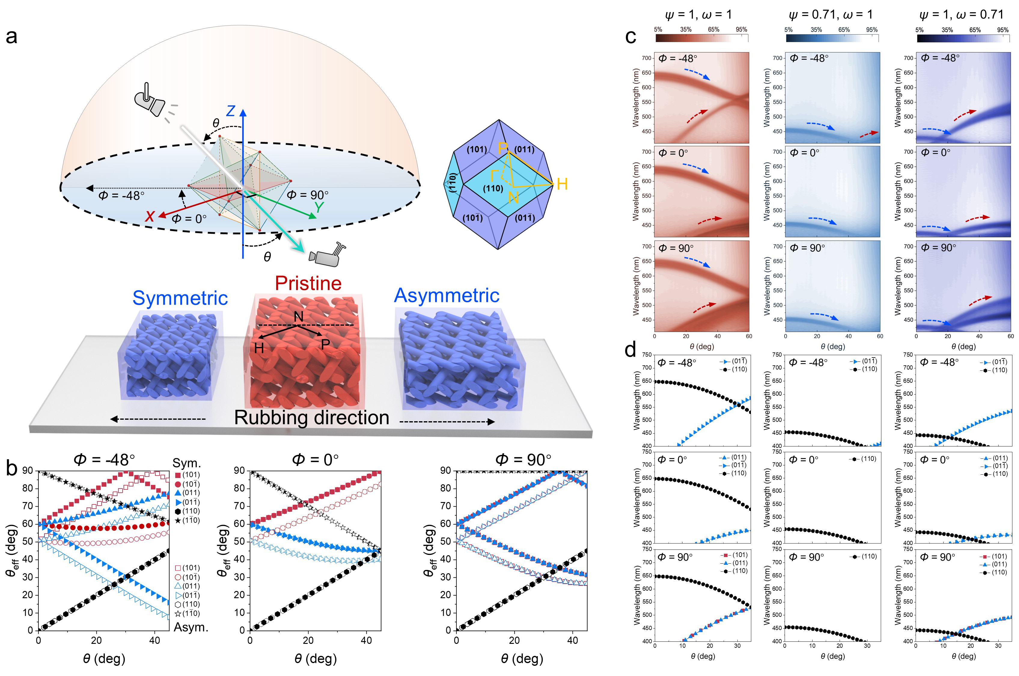 圖5. 基于變形BPI立方晶格的空間角度依賴三維光學調控