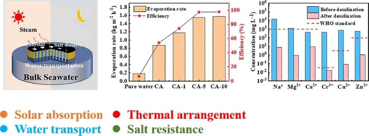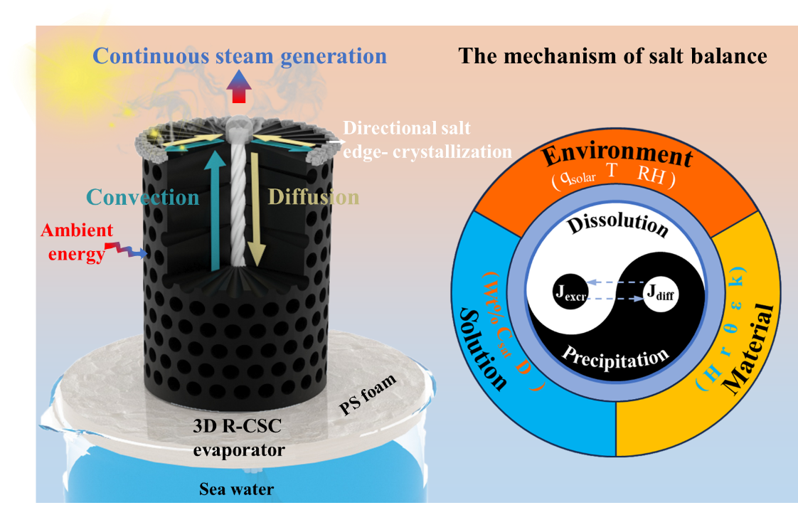 3D殼聚糖/碳納米管氣凝膠蒸發器的定向鹽沉積機理和鹽沉積行為調控