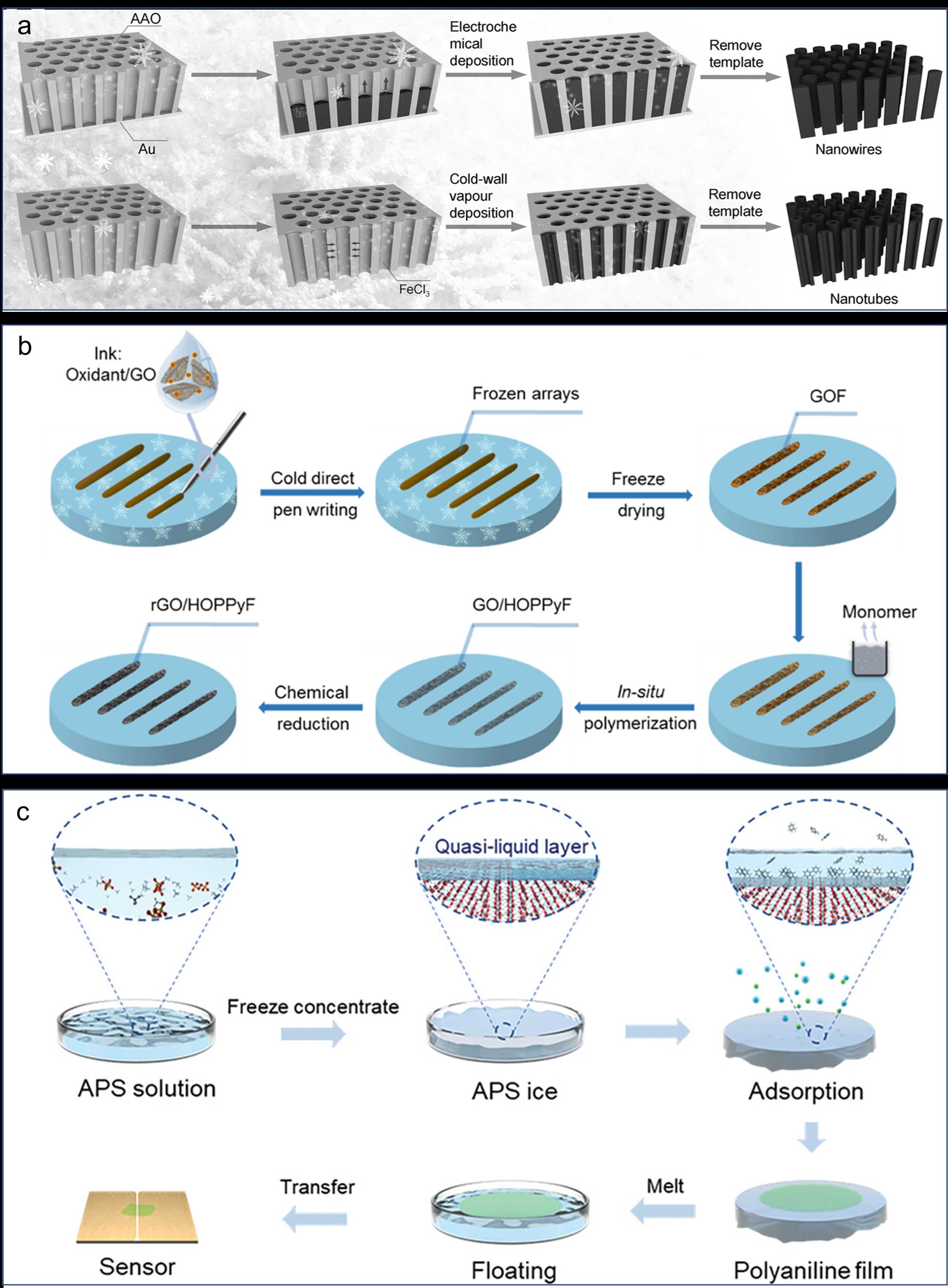 在這一背景下,中國科學(xué)院理化技術(shù)研究所薛面起研究員團(tuán)隊,圍繞共軛高分子(尤其是傳統(tǒng)導(dǎo)電高分子)的鏈有序化,開展從方法開發(fā)、機(jī)理認(rèn)識、物性調(diào)控到應(yīng)用探索的系列研究,為導(dǎo)電高分子材料領(lǐng)域提供重要支撐與理論依據(jù)。針對分子鏈有序性難精準(zhǔn)調(diào)控的核心難題,團(tuán)隊提出并完善了納米限域聚合、外延聚合和界面聚合等多元策略,實現(xiàn)了導(dǎo)電高分子的結(jié)構(gòu)有序性與器件性能的顯著提升。